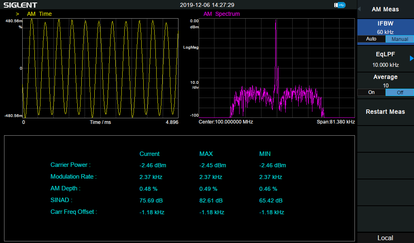 Unlocks common broadcast measurements for the SSA5000A Plus series of spectrum analyzers. Includes: Channel Power, Adjacent Channel Power, Occupied Bandwidth, Total Power, Third-Order-Intercept, and an onscreen waterfall/spectrum analysis chart.