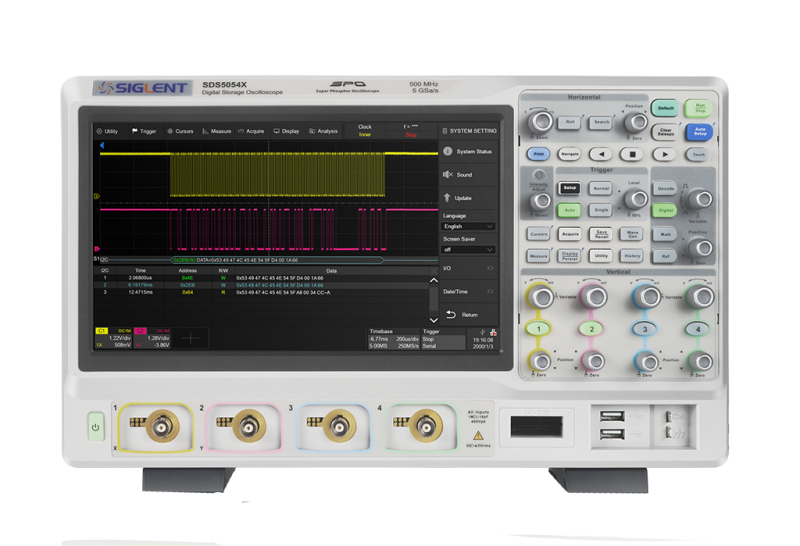 | I/O | USB Host, USB Device, LAN, Pass/Fail, Trigger Out, Sbus (Siglent MSO) | USB Host, USB Device, LAN, Pass/Fail, Trigger Out, Sbus (Siglent MSO) | USB Host, USB Device, LAN, Pass/Fail, Trigger Out, Sbus (Siglent MSO) |