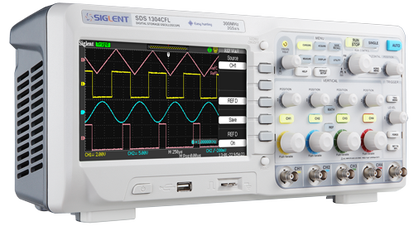 The Siglent SDS1304CFL Oscilloscope offers faster sampling rates and higher bandwidths than other Siglent SDS1000 families of scopes. The CFL’s provide up to four channels with an external trigger input channel and bandwidths up to 300 MHz.