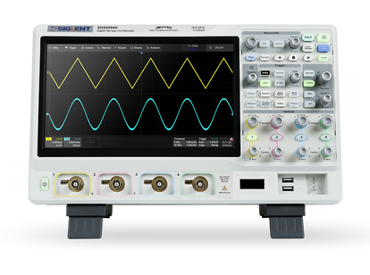 SIGLENT’s SDS5034X Digital Storage Oscilloscopes with a bandwidth 350 MHz, have a maximum sample rate of 5 GSa/s, maximum record length of 250 Mpts, and display up to 4 analog channels + 16 digital channels mixed signal analysis ability.