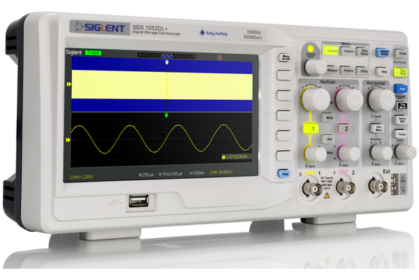 There is adequate screen space to help better see and analyze waveform details. Along with a 500 MSa/s sampling rate, the SDS1000DL+ supports 32 parameters measurements and common mathematical operations to speed up complex / repetitive measurements.