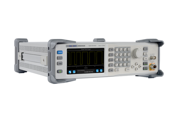 Engineered with cutting-edge technology, the SSG3021X is equipped with a sleek 5-inch capacitive touchscreen for intuitive operation, robust connectivity options, and seamless integration with external devices for extended functionality. From generating clean and stable RF signals to supporting sophisticated testing protocols like IQ modulation and pulse generation, this signal generator sets the standard for reliability and innovation in its class.