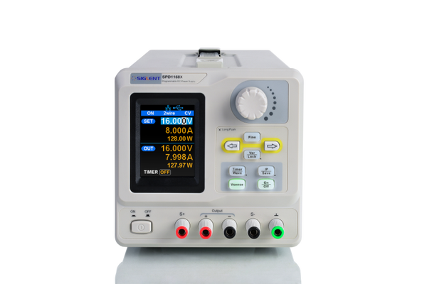 The Siglent SPD1305X features a high precision programmable output capable of delivering up to 30V / 5A and also includes a 4-wire sense function for more accurate voltage sourcing, especially for long leads or high resistance connections. There are additional output short and overload protect functions to assist in production and development applications.