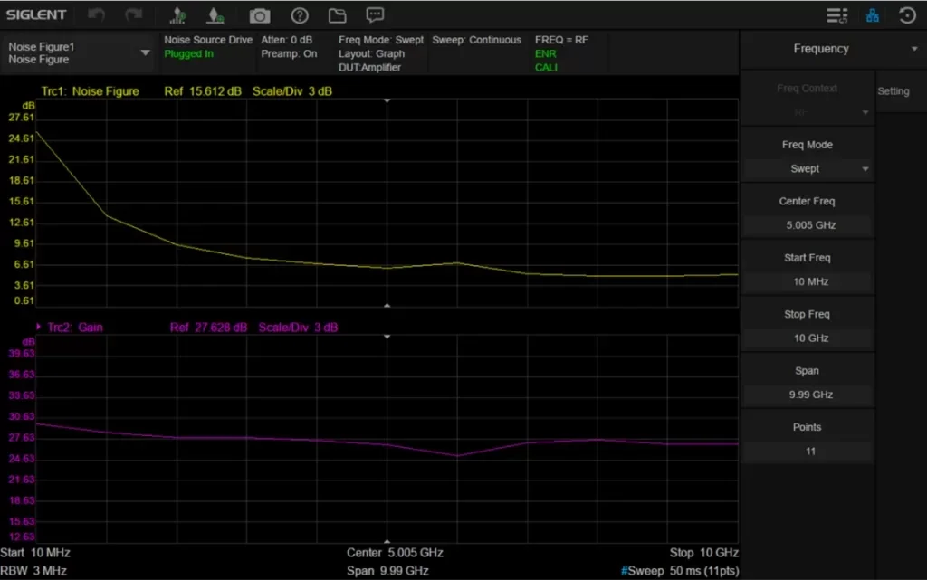 Siglent SSA5000-NF is the Noise figure measurement software license for the SSA5000A series spectrum analyzer. For this you also need the need NSD28 to connect to noise source.