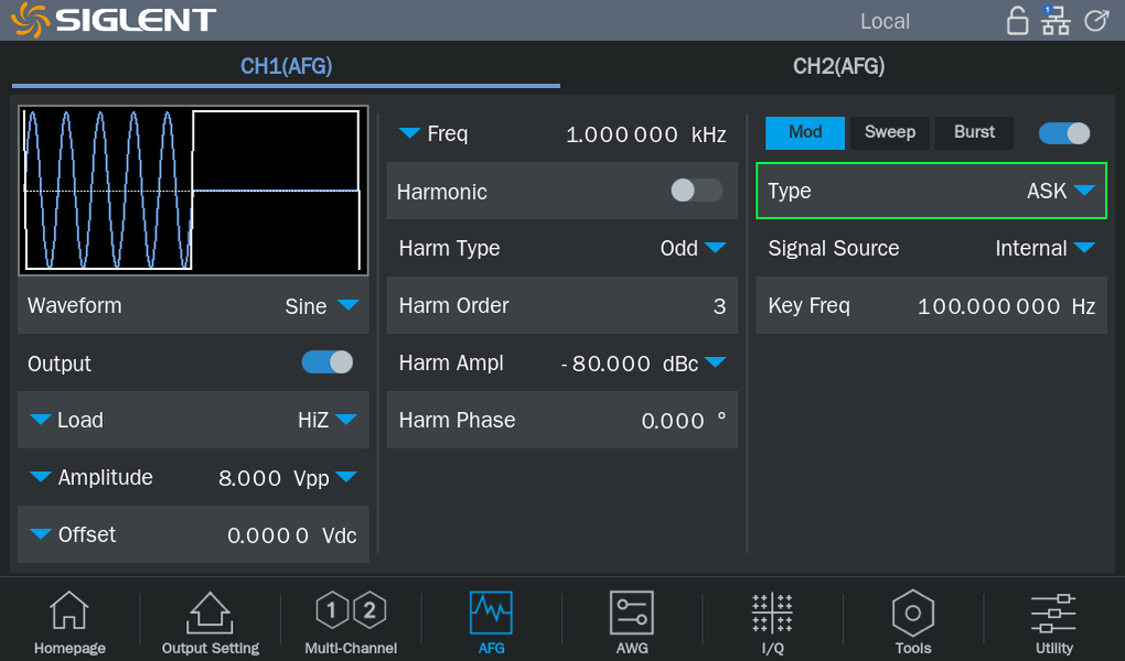 Includes a wide range of analog and digital modulation formats — AM, FM, PM, ASK, FSK, PSK, and PWM — plus sweep, burst, harmonic, and waveform combining functions. -