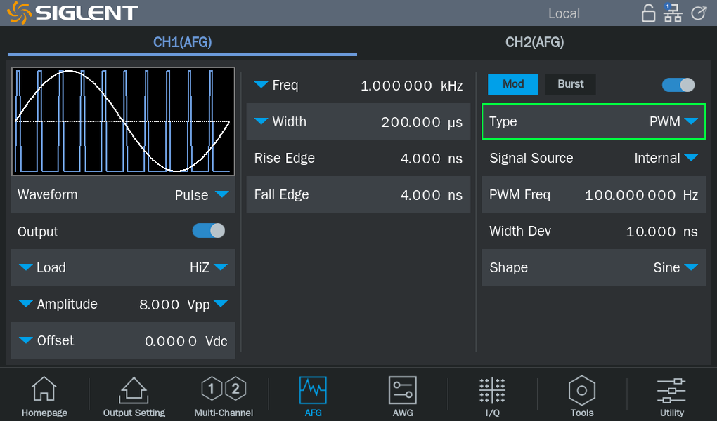 The dual pulse feature of the Siglent SDG3202X is designed for advanced testing in power electronics. It allows engineers to generate two precisely timed pulses with adjustable width, interval, and edges. This makes it possible to evaluate switching parameters, dynamic characteristics, and safe operating areas of devices such as MOSFETs and IGBTs.