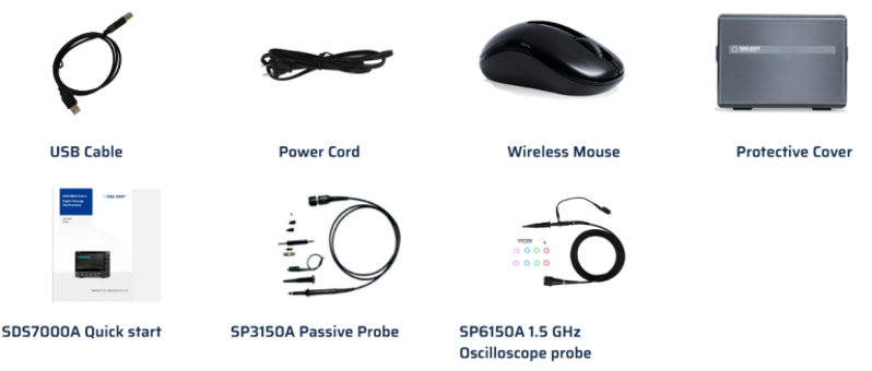 Passive probes SP3150A (1 per channel, 4 pcs) – 500 MHz bandwidth, 10X attenuation, supplied for each analog input channel.
