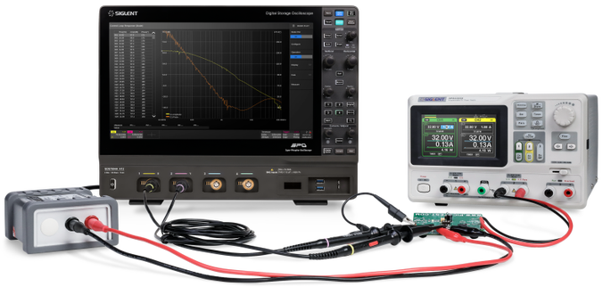 The oscilloscope can control the Built-in waveform generator, SIGLENT isolated USB AWG module or a stand-alone SIGLENT SDG generator, to scan the amplitude and phase-frequency response of the DUT, and display the data as a Bode Plot. This makes it possible to replace expensive network analyzers in some applications