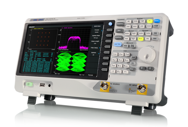 The SIGLENT SSA3032X-R Real Time spectrum & vector network analyzer has a a capability of 40 MHz analysis bandwidth and 7.2 μs 100% POI, the analyzer can provide multi-dimensions data displays, advanced triggering, and RF data capturing, to solve modern RF spectrum challenges, like hopping frequency, conflict channel, spectrum interference, etc. The Siglent SSA3032X-R also provides standard tracking generator for network analysis, optional wide band digital modulation analysis, and EMI measurement. Applications include broadcast monitoring/evaluation, cellular site, IoT, WiFi, Bluetooth surveying, research and development, education, production, and maintenance.