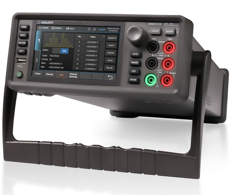 With output capability up to ±210 V and ±3.03 A DC (±10.5 A pulsed), and resolution down to 10 fA and 100 nV, the SMM3311X is ideal for detailed I-V curve tracing, semiconductor characterization, low-current device analysis, and power device testing . Its fast triggering (10 μs minimum interval), sweep and list modes, pulse generation, and internal data storage make it perfectly suited for both R&D laboratories and automated production environments.
