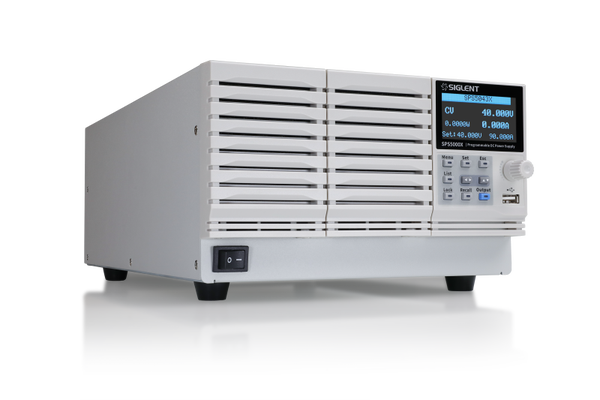 The Siglent SPS5000X-Series is a programmable Switching DC Power supply serie that provides a wide range of output power using single-channel and multi-channel output configurations coupled with constant power capability. The series of power supplies includes sixteen models with voltages to 160 VDC and power to 1080 W. The SPS5000X supplies can be connected in series (2 units) or in parallel (3 units) to meet the requirements of 0~320V and 0~270A, with a maximum combined power of 3240W. The SPS5000X Series has a high brightness 2.4 inch OLED display, a user-friendly human-computer interface that enable easy control and performance monitoring.