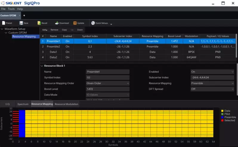 Custom OFDM software module supports highly customizable settings based on Orthogonal Frequency Division Multiplexing (OFDM), and generates baseband data for Siglent signal generators to output modulated signals.