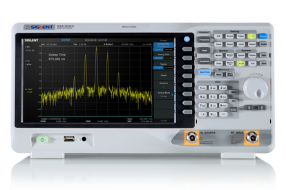 The Siglent SSA3032X spectrum analyzer offers a frequency range of 9 KHz to 3.2GHz. With light weight, small size, and friendly user interface, the SSA3032X has a large 10.1 lnch WVGA bright easy to read display, can do powerful and reliable automatic measurements, and plenty of impressive features. Applications include research and development, education, production, maintenance, and pre-compliance testing.