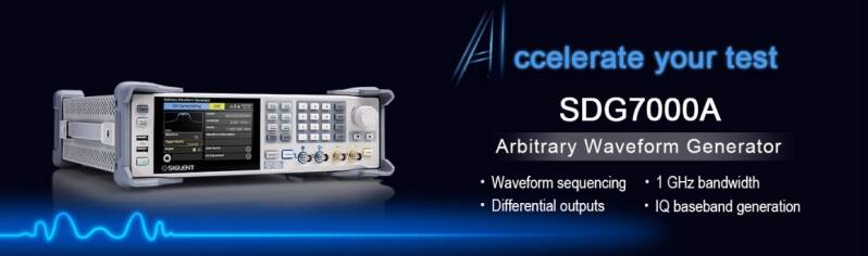 SIGLENT’s SDG7102A is a dual-channel Arbitrary Waveform Generator with a 1 GHz bandwidth, a maximum sample rate of 5 GSa/s and 14-bit vertical resolution. It can generate arbitrary waveforms point by point with a maximum 2.5 GSa/s sample rate and vector signal with a maximum 500 MS/s.